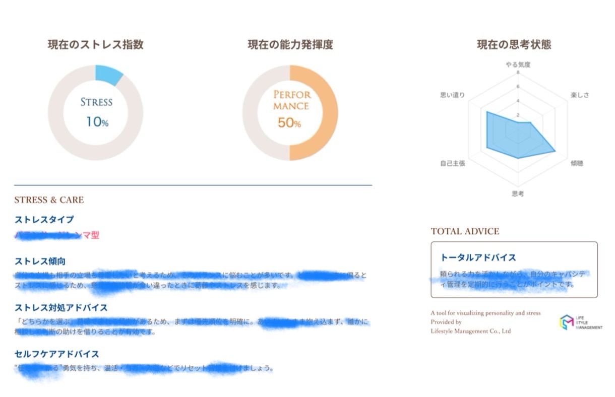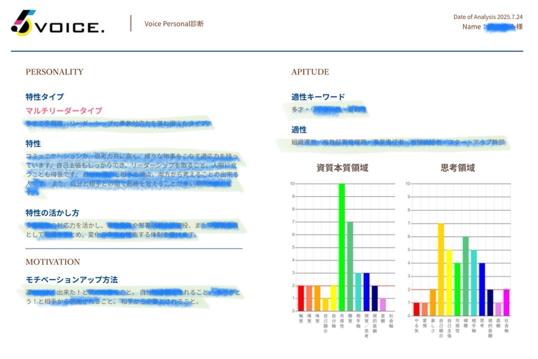 結果シートには、グラフや文章で 「今の自分」 がはっきりと示されます。